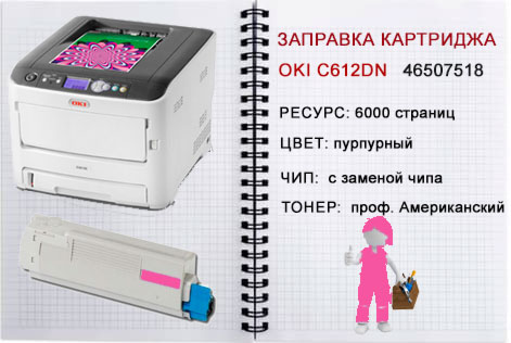 Заправка пурпурного картриджа OKI 46507518 для c612dn с заменой чипа
