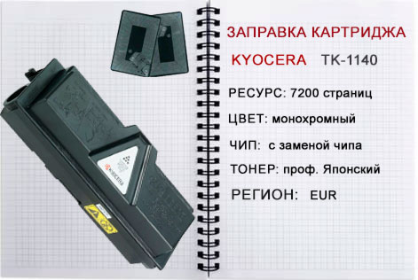 Заправка картриджа Kyocera TK-1140 для ECOSYS Kyocera ECOSYS FS-1035MFP/ FS-1035DP/ FS-1135MFP/ M2035dn/ M2535dn заменой чипа