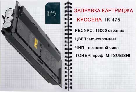 Заправка картриджа Kyocera TK-475 для FS-6025MFP, FS-6030MFP, FS-6525MFP, FS-6530MFPс заменой чипа