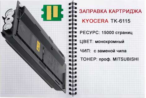 Заправка картриджа Kyocera TK-6115 для ECOSYS M4125idn / M4132idn с заменой чипа