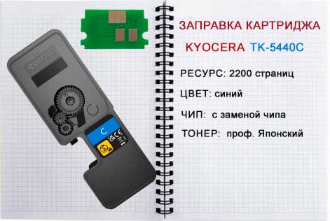 Заправка картриджа Kyocera TK-5440C для ECOSYS PA2100cx \ PA2100cwx \ MA2100cfx \ MA2100cwfx с заменой чипа