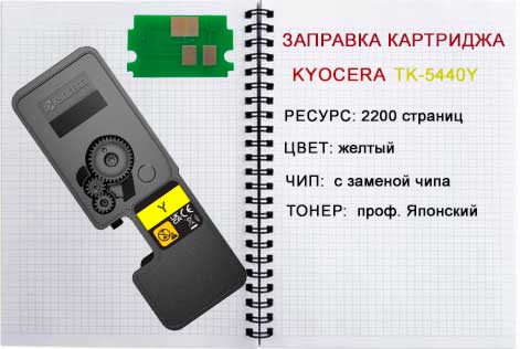 Заправка картриджа Kyocera TK-5440Y для ECOSYS PA2100cx \ PA2100cwx \ MA2100cfx \ MA2100cwfx с заменой чипа