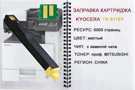 Заправка картриджа Kyocera TK-8118Y для Ecosys M8124cidn с заменой чипа